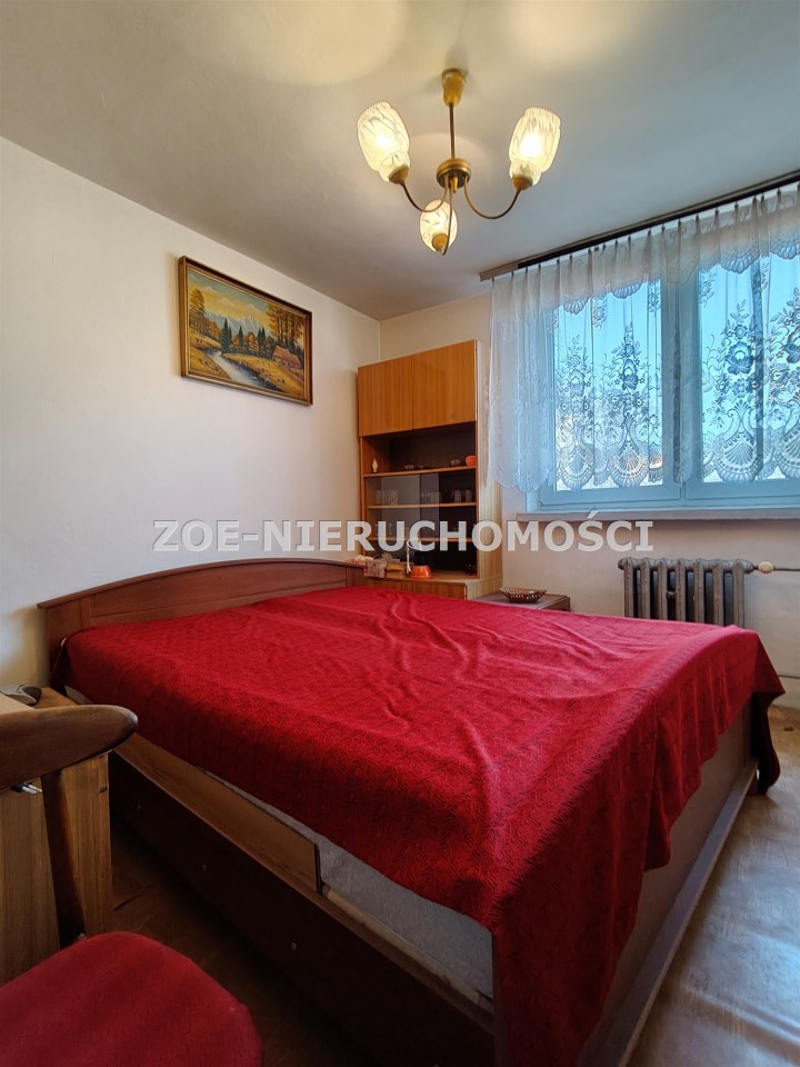 Mieszkanie obejmuje salon o powierzchni 13m2 z wyjściem na balkon (pow. 5,6m2), sypialni 8,9m2, sypialni 9m2, kuchni – 6m2, która jest pomieszczeniem jasnym ze względu na rozległe okna, oraz łazienkę z WC o powierzchni 2,7m2. Komunikację zapewnia przedpokój o powierzchni 4,5m2. Do mieszkania przynależy piwnica o powierzchni 2,9m2. Z balkonu widok na wysokie drzewa. Liczna roślinność zapewnia komfort termiczny w upalne dni.